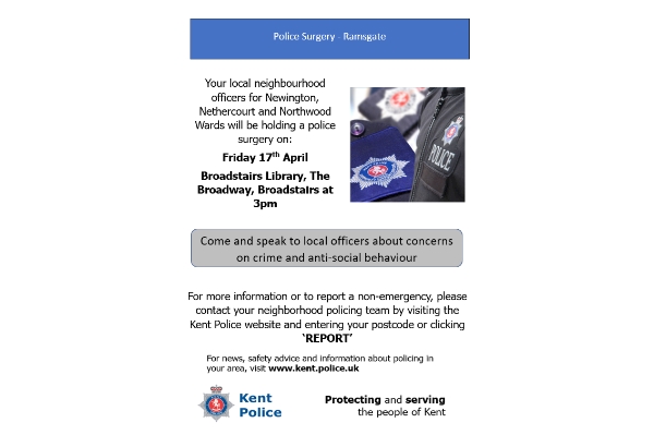 Northwood Police surgery - Broadstairs Library : Fri 17 Apr 15:00 |