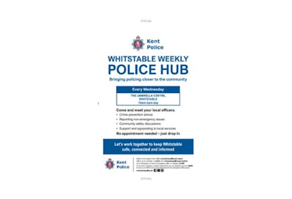 I am hosting my Whitstable Weekly Police Hub at The Umbrella Centre, Oxford Street, Whitstable.